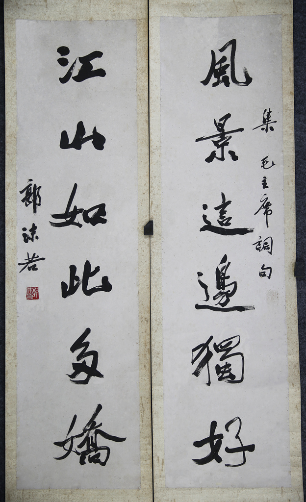 名称: 1961年郭沫若“集毛主席词句”行书六言联立轴