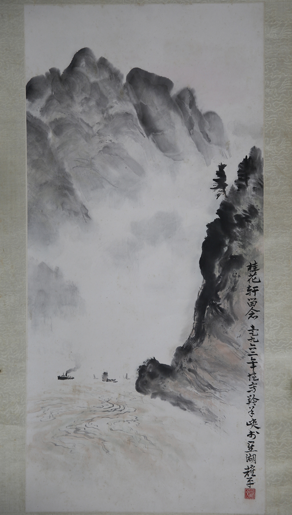 款识:桂花轩留念。一九六二年忆写羚羊峡于星湖。耀平。